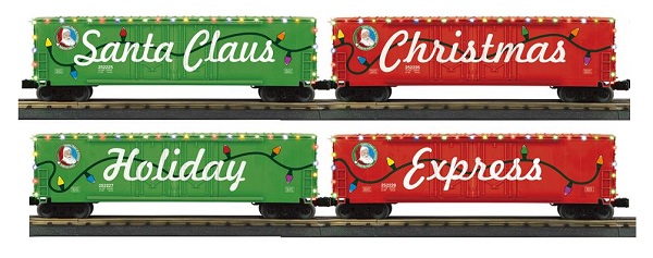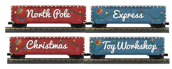 NORTH POLE 4-CAR 50' DOUBLE DOR BOX CAR SET W/LED'S $369.95